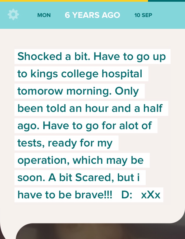 It was an interesting day to say the least. I was really not looking forward to going to King’s. I know it’s a good hospital but I think it was the fact that it was a massive hospital and was based in London. You hear all these stories of people being sent to a London hospital such as King’s when they’ve got major injuries or conditions.